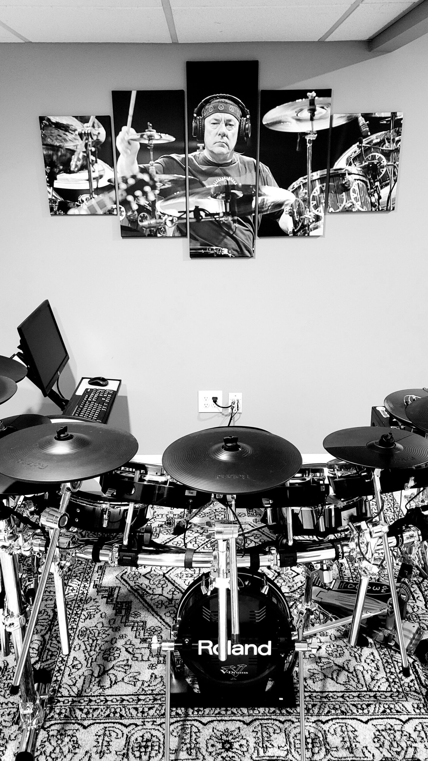 So this is where we sit with the drumkit now. I am super happy with it and as I commented to another YouTuber, I don’t think there is anything else I would like to change with the kit at the moment. Not to say something won’t come up down the road, but for now, I am done. For Christmas, my wife bought me an amazing Neil Peart wall art collage that fit perfectly on the wall behind me. So no more bare walls during drum covers! |