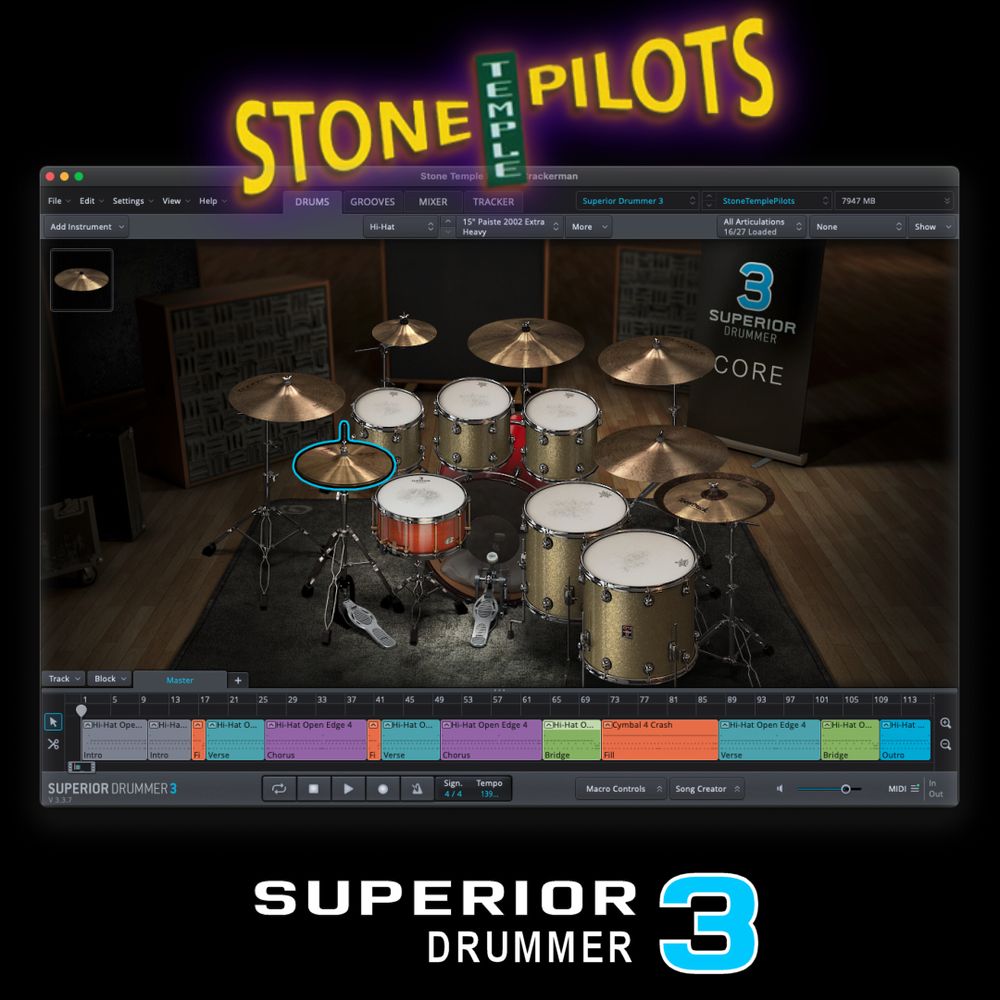 This download will be the complete Superior Drummer 3 tracked MIDI performance in .sd3p format created and played by me, as displayed on my YouTube channel, using ONLY the Superior Drummer 3 library.